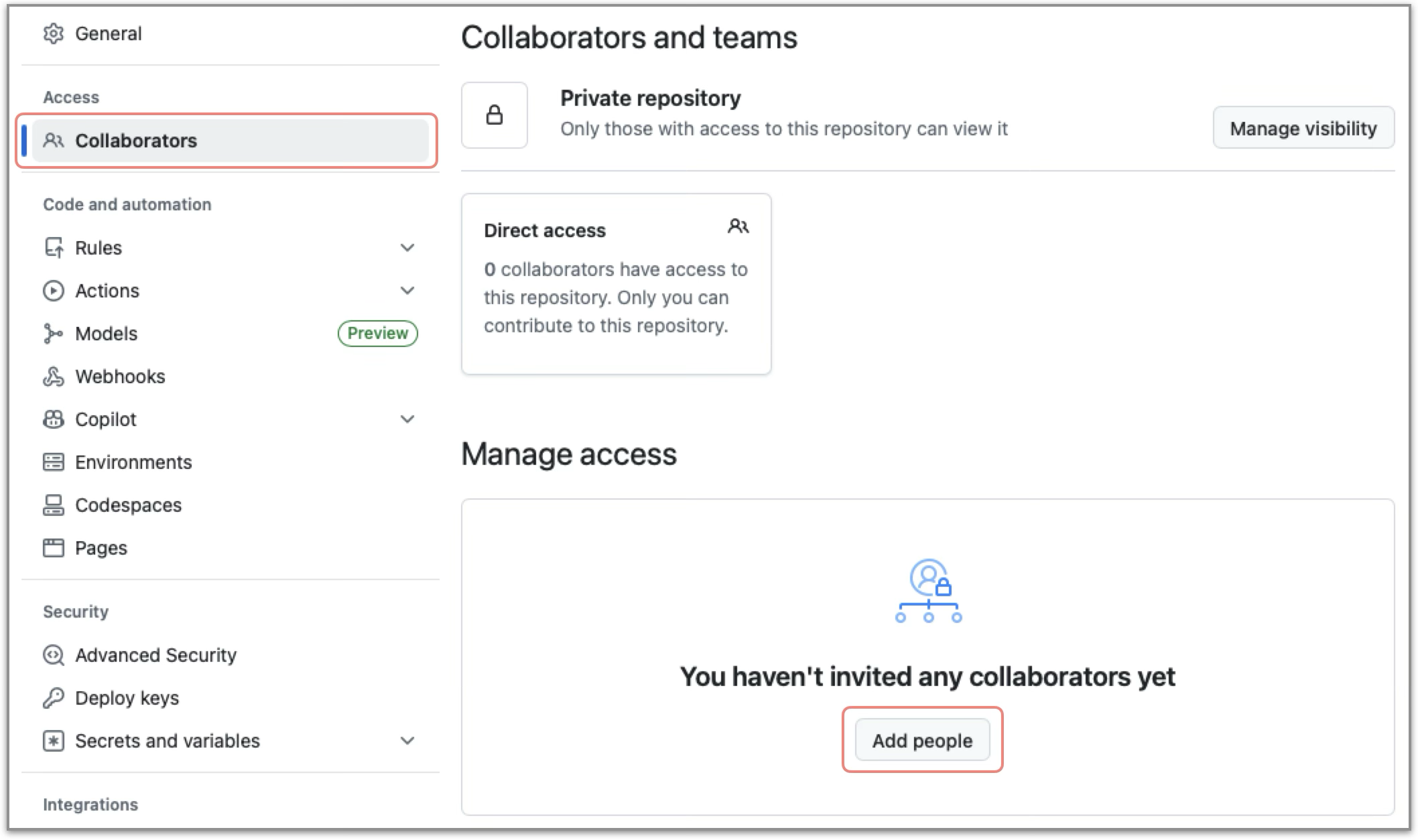 [Settings]in your repository, and select[Collaborators]. -